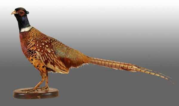 SoldFlying Ringneck Pheasant Taxidermy Bird MountThis is a male, or "Rooster" Ringneck Pheasant. The mount is clean and in good condition. The taxidermy quality on a 1 to 10 scale grade a good 7.5 on this mount.See Sold Price