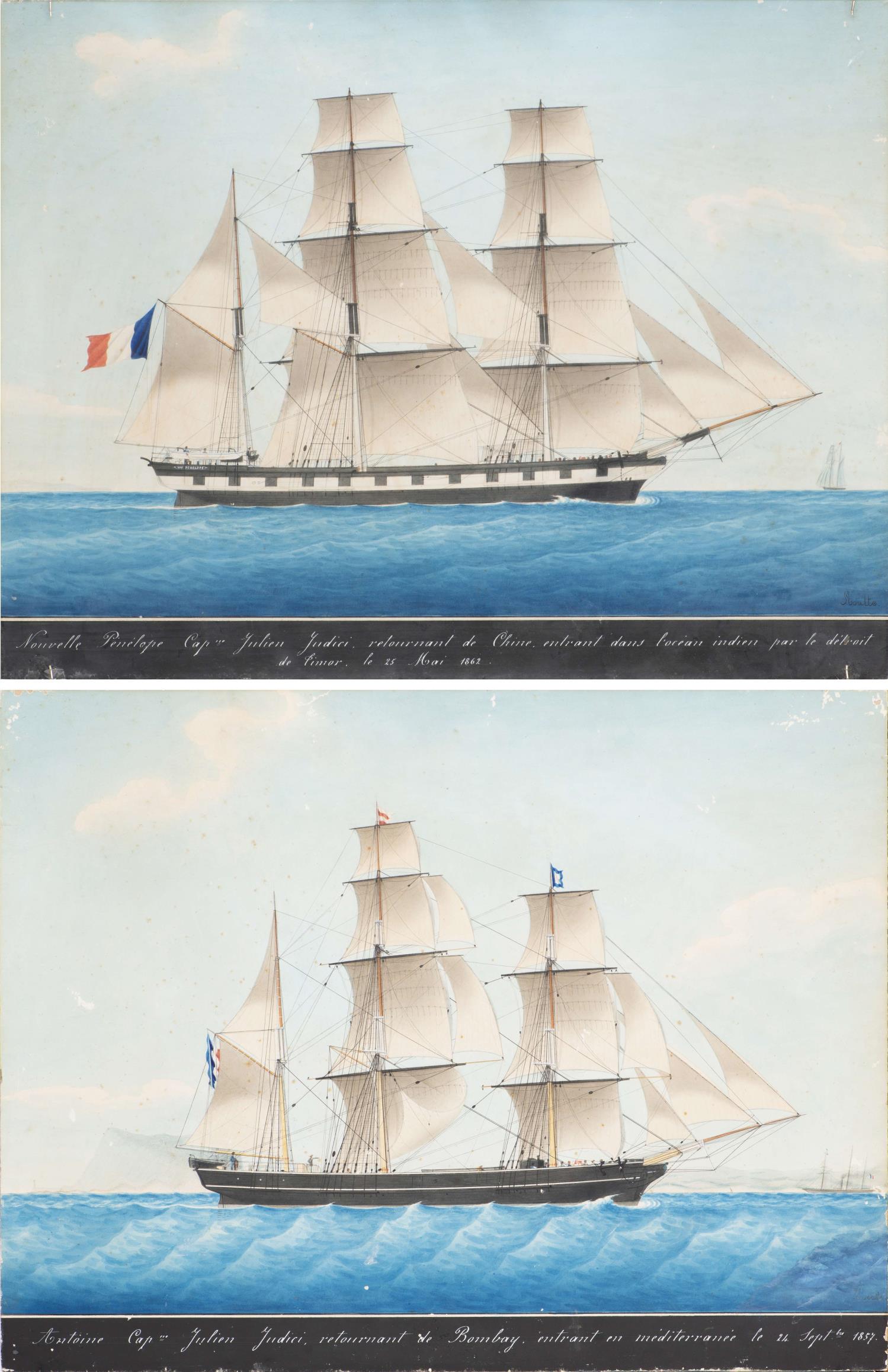 Moutte XIXe 2 peintures de bateaux