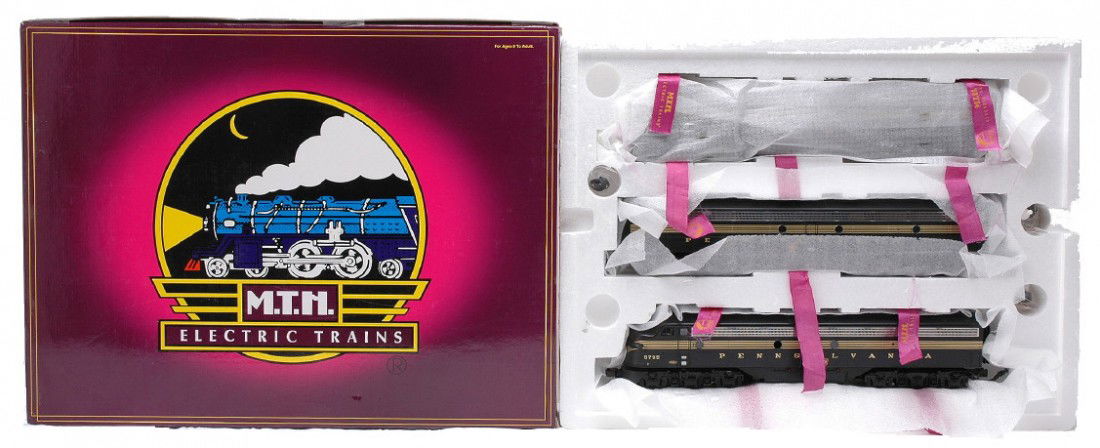 SoldLot of 2: MTH Motive Power in Boxes.Lot consists of one E8 ABA PRR diesel engine set with Proto-sound 2.0, item number 20-2894, mint and in original box. Also a New York Central E6 B unit, not powered, item number 20-453-3. From the RaySee Sold Price