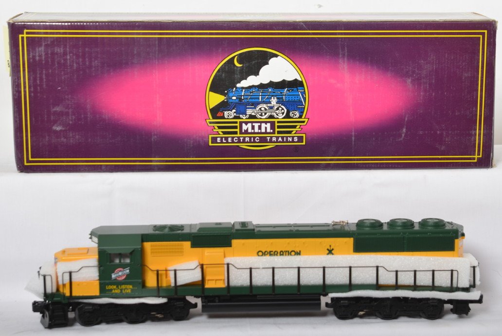 SoldMTH Diesel & CraneIncludes a 30-2117-1 UP SD60M diesel with Dual Flywheel drive, Horn & ProtoSounds. 20-98975 NH Crane. Both show light use with boxes.See Sold Price