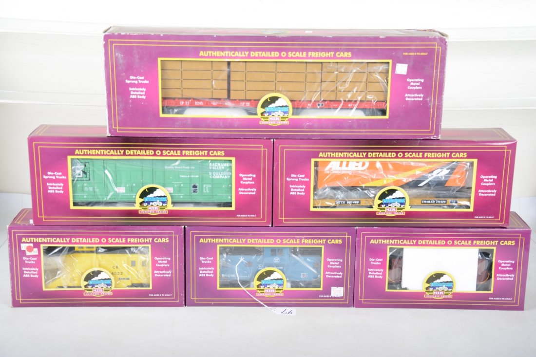 SoldMTH Premier Freight CarsIncludes 20-91325 L&NE caboose; 20-93016 PRR boxcar; 20-98001 PRR gondola; 20-98244 LV snow plow; 20-97679 P&LE coal hopper; 20-93471 P&R boxcar. All appear new in boxes, C9+-10See Sold Price