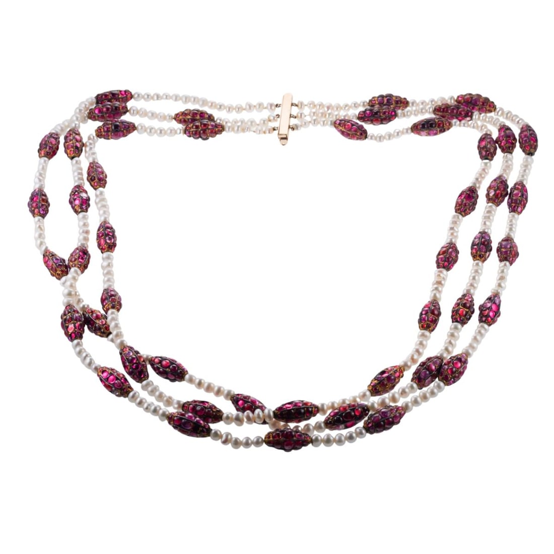 Mughal Gold Pearl Ruby Multi Strand Necklace