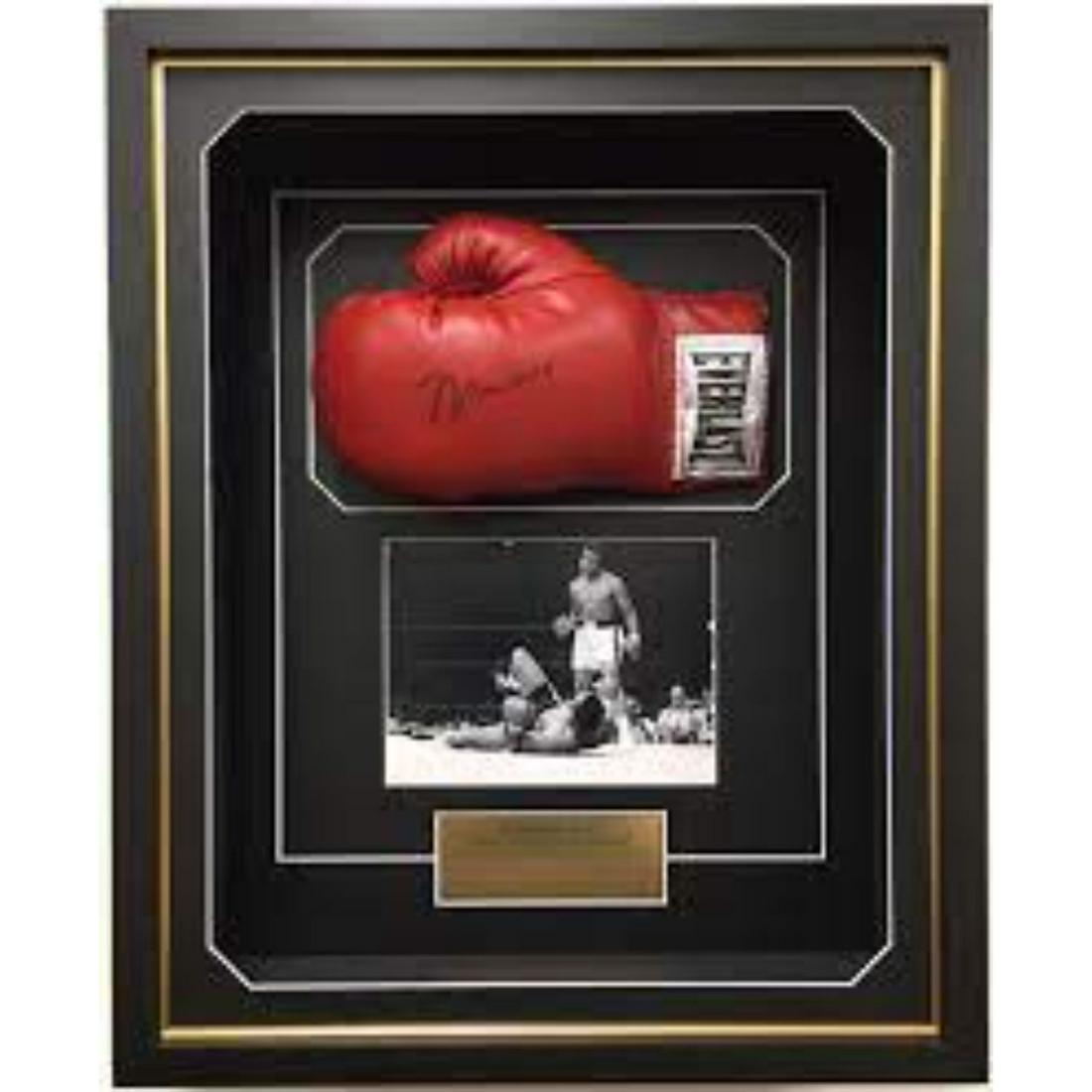 SoldSigned Muhammad Ali Boxing Glove CollageSigned Muhammad Ali Boxing Glove Collage, Sports Memorabilia. Muhammad Ali collage with Everlast boxing glove signed in black ink. An 8' x 10' black and white photograph showing Ali's legeSee Sold Price