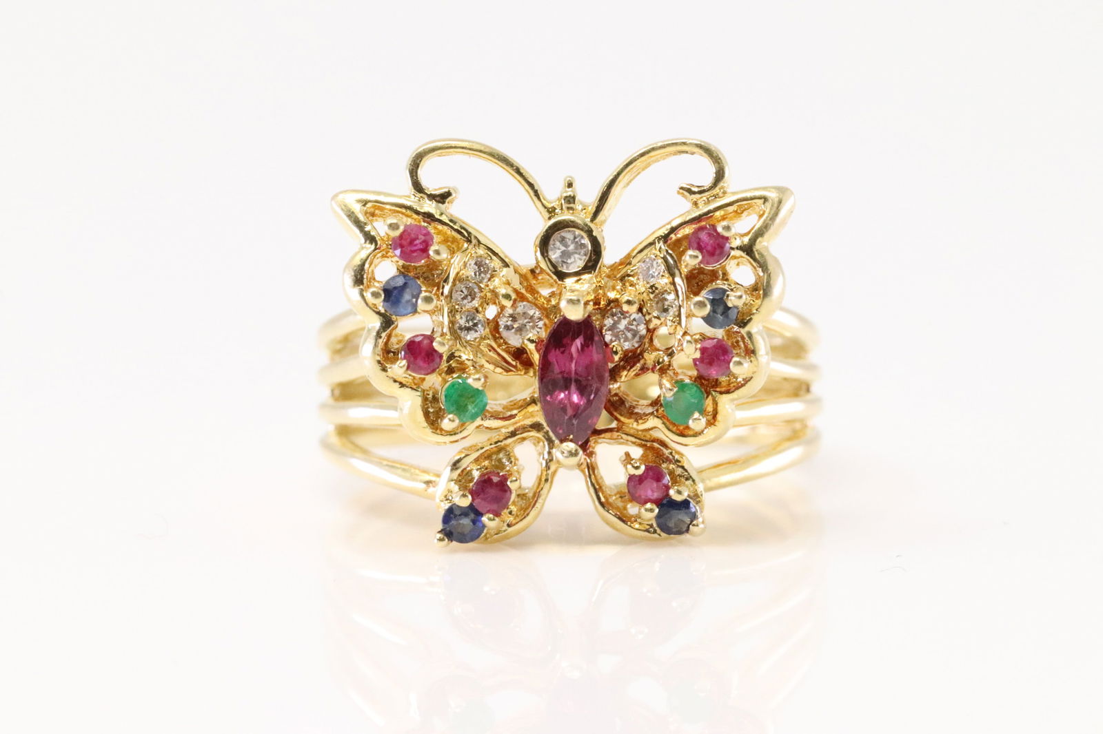 Multi-Color Gemstone / Diamonds Butterfly Ring 18Kt.