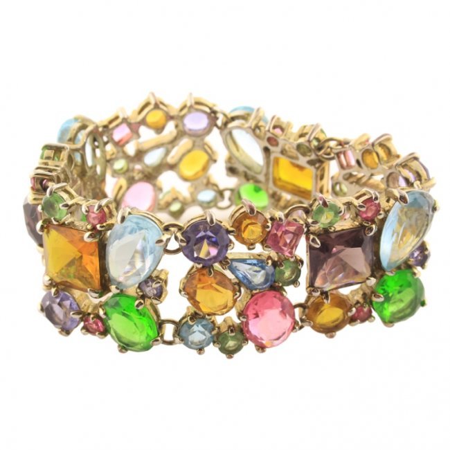 SoldHeart Link Multicolored Gemstone Bracelet, Gold Toned Band, Marked 925, 7 inchesBidding on this item will be indication that the Bidder acknowledges that they have read and agreed to the Terms and Conditions posted to this AuctionSee Sold Price