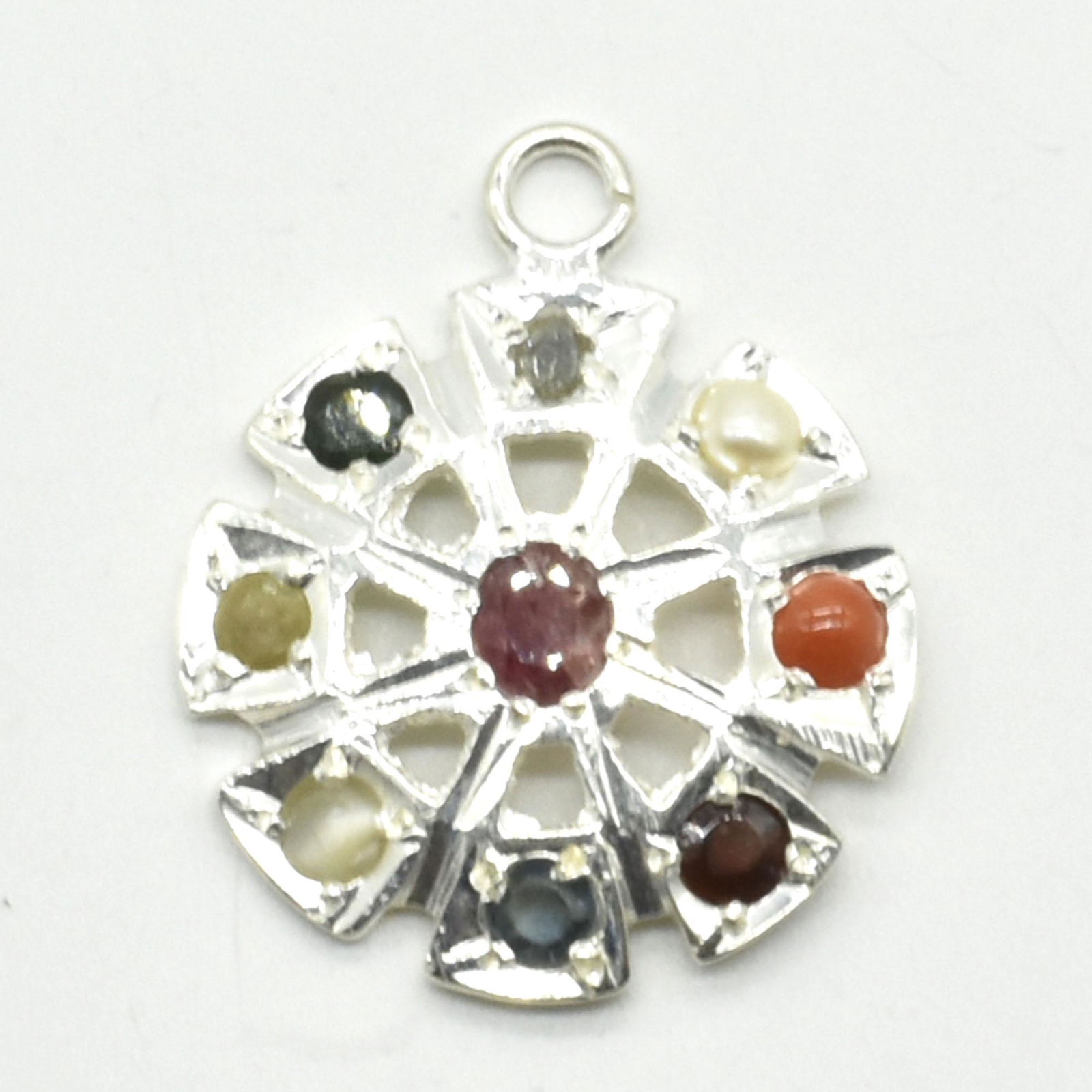 Womens Vintage Sterling Silver Multi Stone Pendant