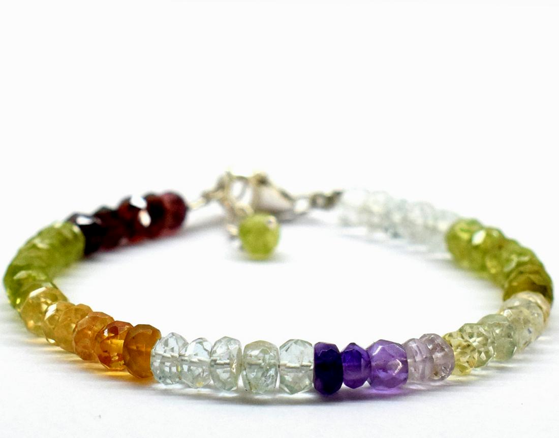 MULTI GEMSTONE RONDELLE BRACELET W/ 925 SILVER