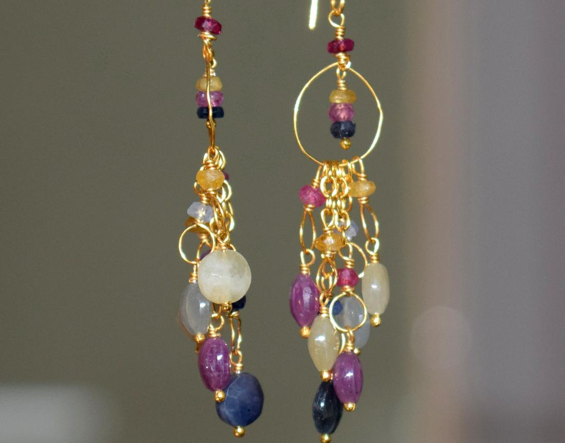 MULTI SAPPHIRE COIN EARRING W/ STERLING SILVER