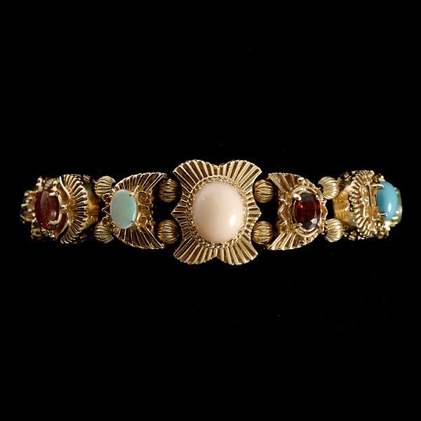 MULTI-STONE, 14K YELLOW GOLD BRACELET.