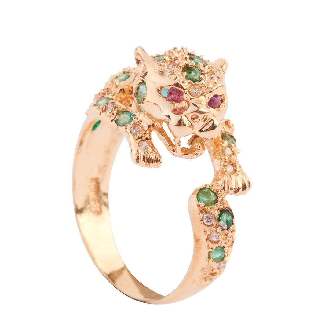 Multi-Stone, 14k Yellow Gold Panther Ring.