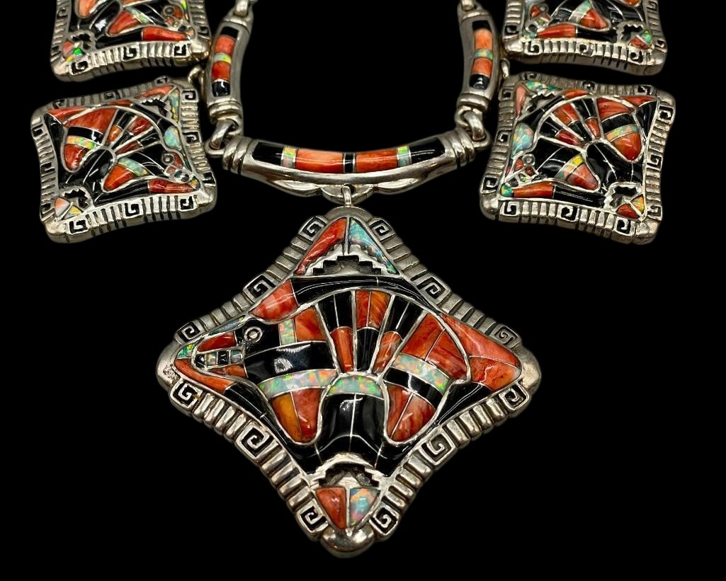 Large Estate Lot Amber & Amber/ Sterling Silver Jewelry, Necklaces, Bracelets, PendantsMar 15, 2026Lot of 2 Algerian SIlver nd Enamel Necklaces.Mar 15, 2026NATIVE AMERICAN / SOUTHWESTERN-STYLE STERLING / SILVER JEWELRY, LOT OF TEN3 days LeftNATIVE AMERICAN / SOUTHWESTERN-STYLE SILVER AND STONE / OTHER JEWELRY, LOT OF NINE3 days LeftNATIVE AMERICAN ZUNI INLAID STERLING / SILVER BELT BUCKLES AND BOLO TIE, LOT OF THREE3 days LeftNATIVE AMERICAN NAVAJO AND SOUTHWESTERN-STYLE STERLING / SILVER BEAR-THEMED JEWELRY, LOT OF 133 days LeftNavajo Sterling Silver Multistone Inlay NecklaceMar 14, 2026Navajo Tommy Singer Sterling Multistone NecklaceMar 14, 2026A FINE TURQUOISE INLAID SILVER NECKLACE WITH AN AMULET BOX, GAU, 19TH CENTURYMar 11, 2026Navajo Alvin & Lula Begay Sterling Inlay PendantMar 14, 2026A RARE TURQUOISE AND CORAL INLAID SILVER NECKLACE WITH AN AMULET BOX, GAU, 19TH CENTURYMar 11, 2026A Vintage Tibetan Composite Hardstone Inlaid Necklace, 255g, 100AA3 days LeftDaniel Coriz Kewa Sterling Multi-Stone Inlay NecklaceApr 04, 2026Linette Laiwakete Zuni Sterling Multi-Stone Peyote Bird Inlay Station NecklaceApr 04, 2026Elamite Carnelian Necklace with Large Silver Triangular Pendant2 days LeftAntique Silver Chain Necklace w/ CharmsMar 18, 2026
