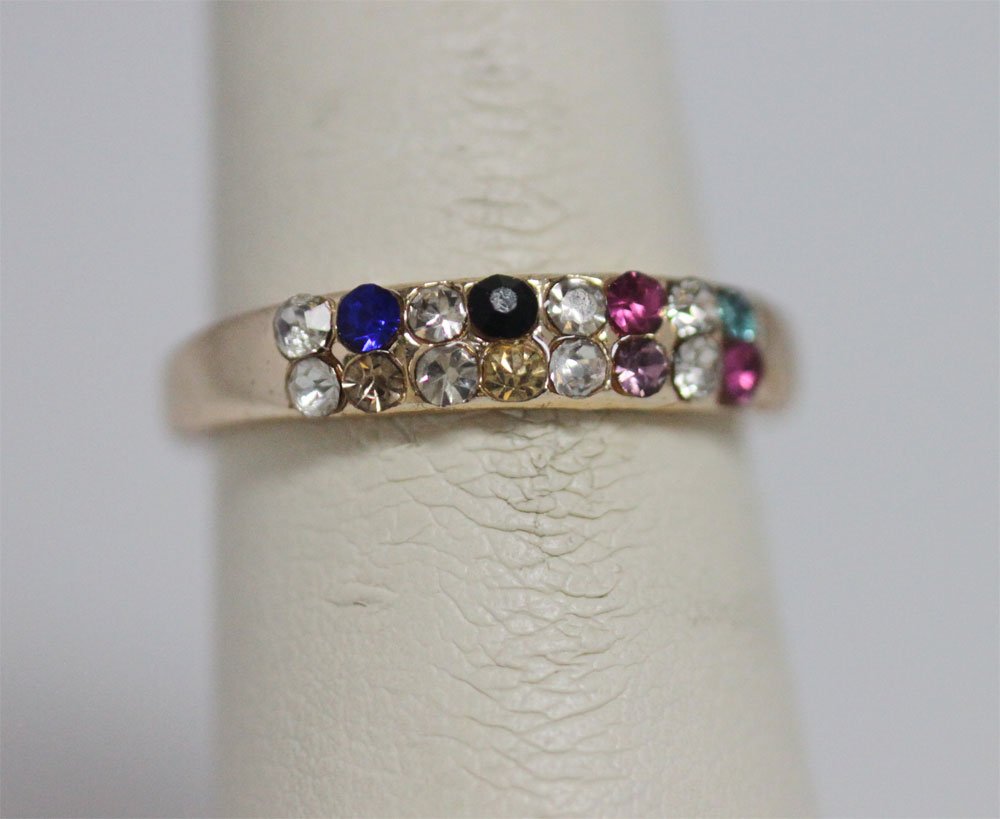 MULTICOLOR CZ GOLD PLATED BRASS RING