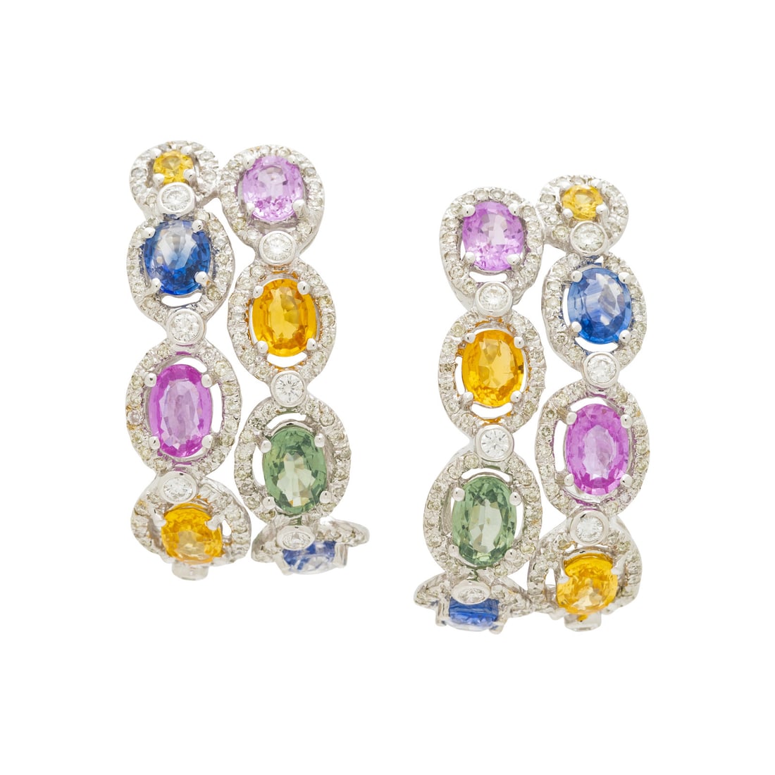 Elegant 18k White Gold Twist Earrings with 60 Carats Multicolor Sapphires and DiamondsDiamond Depot4.3(10)$8,6004 days Left