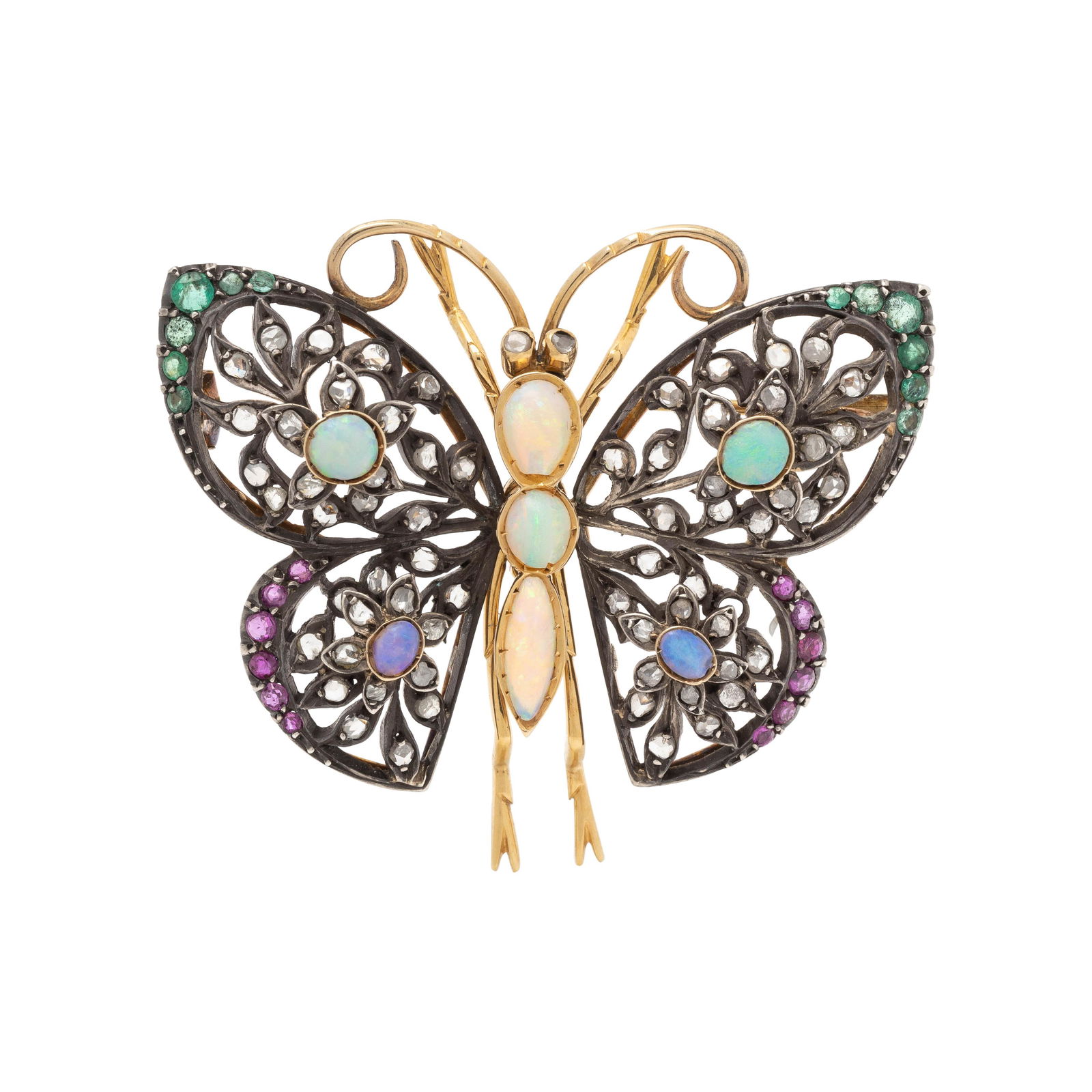 MULTIGEM AND DIAMOND BUTTERFLY BROOCH