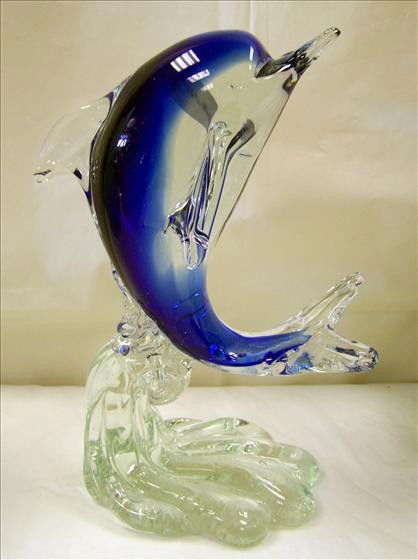 Murano Blue Dolphin clear base 10"
