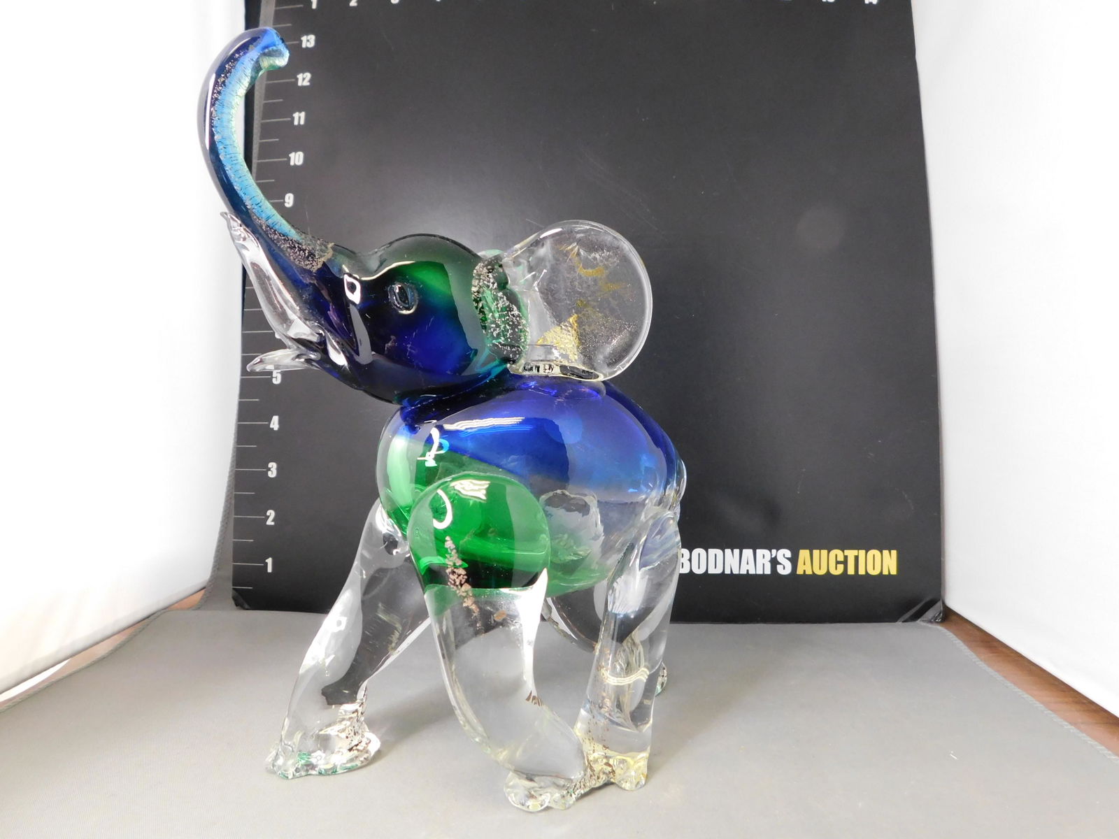 SoldMurano Art Glass Elephant SculptureDESCRIPTION: A Murano art glass elephant sculpture. This is a hand blown glass sculpture with the shape of an elephant in clear glass with turquoise blue shades. It is marked with a "Murano Italia ColSee Sold Price