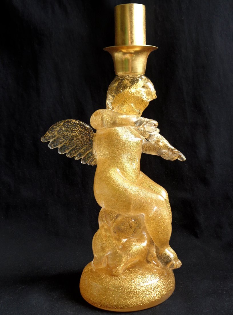 Murano Gold Flecks Angel Candlestick