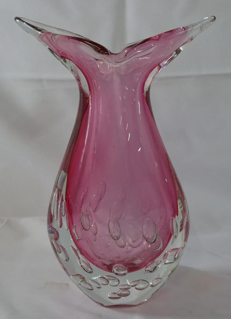 MURANO LARGE PINK T CLEAR CONTROL BUBBLE VASE 15" HIGH
