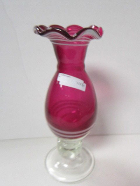 ENGLISH VICTORIAN CRANBERRY GLASS VASE W/ APPLIED RUFFLE