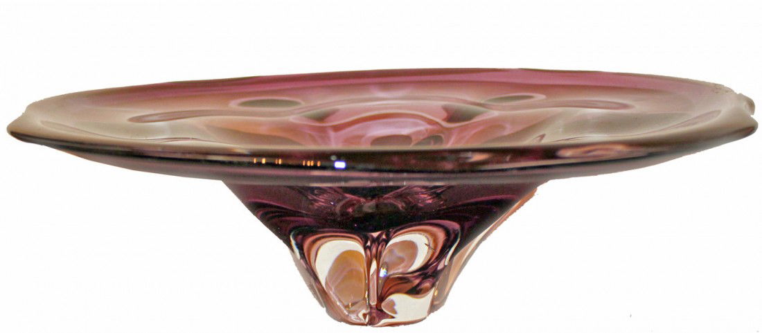Pink Glass Pedestal Serving Dish w/ Flared Edges