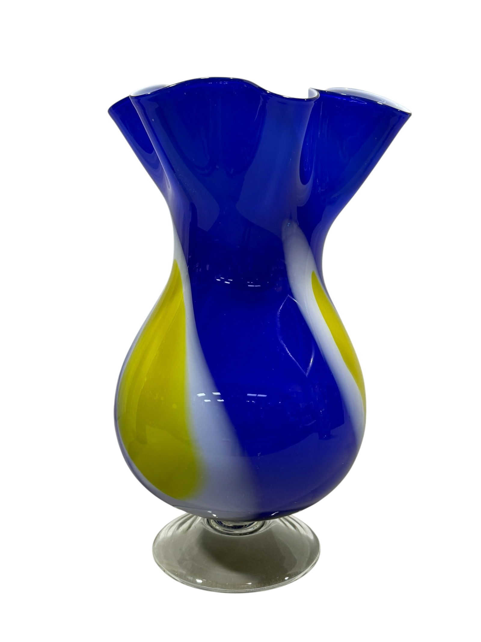 Murano Glass "Blossom" Vase in Yellow and Blue, Italy