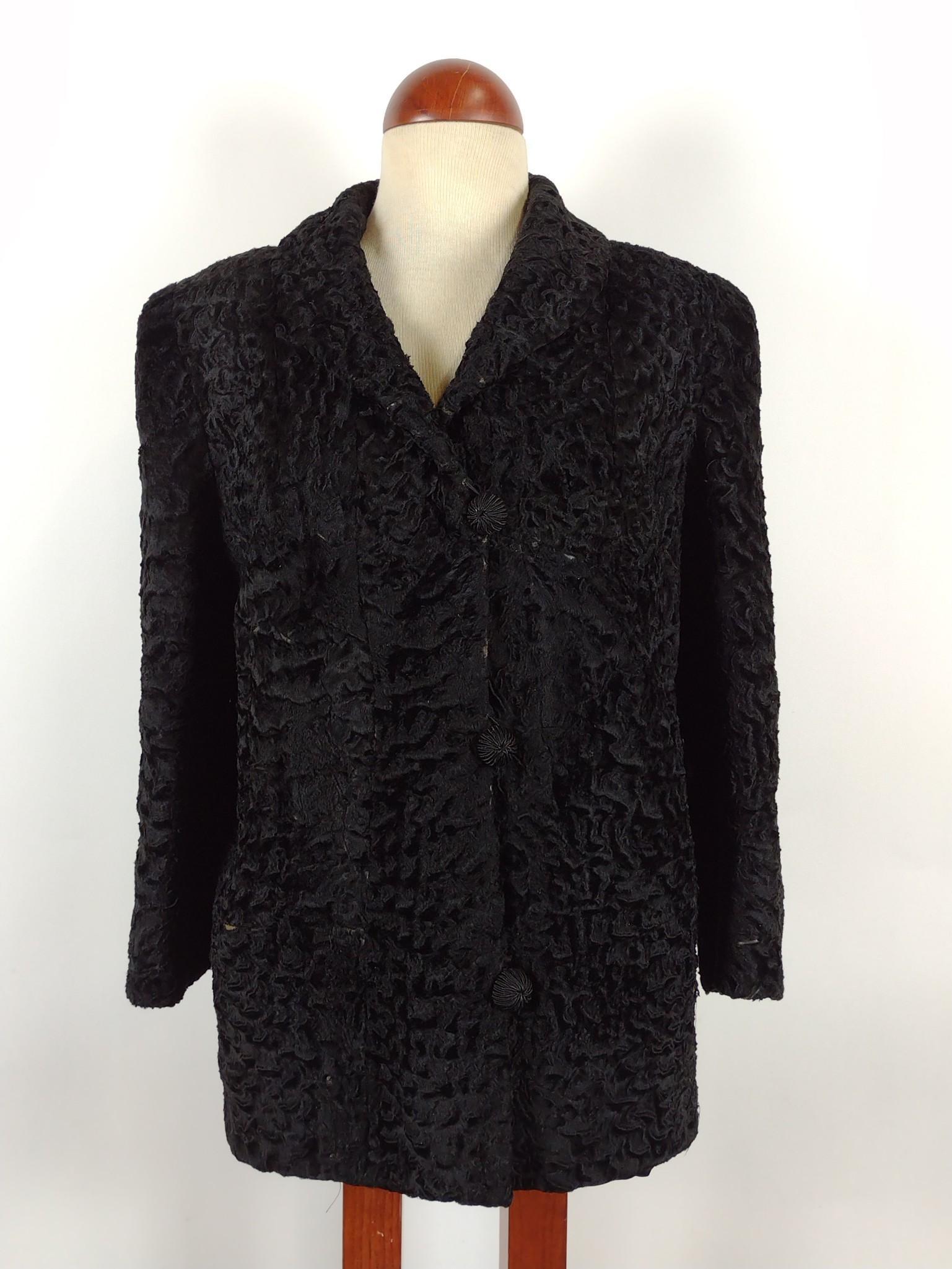 BLACK PERSIAN LAMB FUR COAT EU: XL ; US: 20