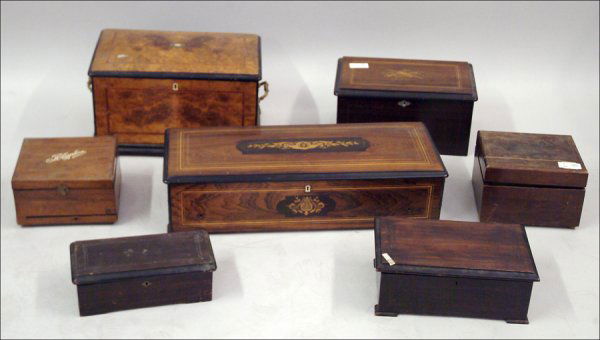 A Group of Thirteen Southeast Asian Silver Articles 19th-20th centuryMar 25, 2026Cartier, Zenith & Russian Imperial Boxes 9pc LOTMar 26, 20262 ANTIQUE BOXES, TEA CADDY & FRAME7 days LeftBoxes and case of Microscope Slides, 19th century.3 days LeftCninese & Russian Wood, Bone & Lacquer Boxes 6pcsMar 26, 2026Four Antique Boxes, 19th c., Brass- H.- 1 1/4 in., W.- 4 in., D.- 3 1/8 in.; Largest- H.- 5 1/8 in.,Mar 26, 2026Collectible Reuge Cylinder Music Box Jewelry Box With Original Box Antique Rare15 hrs LeftSwiss Cylinder "6-Airs" Marquetry Music BoxMar 26, 2026A Swiss cylinder music box, Mermod Fr?res, late 19th century,5 days LeftBox 10pc Antique Wood Ship Relic Snuff Boxes & Cigar BoxTHREE PENNSYLVANIA TOLE DOME TOP DOCUMENT BOXES. Largest, 7.5"h. 9.75"w. 6.5"d.4 days LeftFOUR AMERICAN WOOD BOXES, INCL. MAHOGANY AND MARQUETRY EXAMPLE. Largest, 4.5''h. 9.25" w. 4.5''d.4 days LeftGroup of Four Wooden Wadhams Motor Oil Advertising Crates5 days LeftFOUR PENNSYLVANIA TOLE DOCUMENT BOXES. Largest, 5.5"h. 8.75"w. 3.5"d.4 days LeftFive Asian Wax Seal Stamps, and Assortment of Boxes6 days LeftThree reproduction wooden boxes and ceramic bowl, 20th C., including: wood jewelry box or tea cady,23 hrs Left