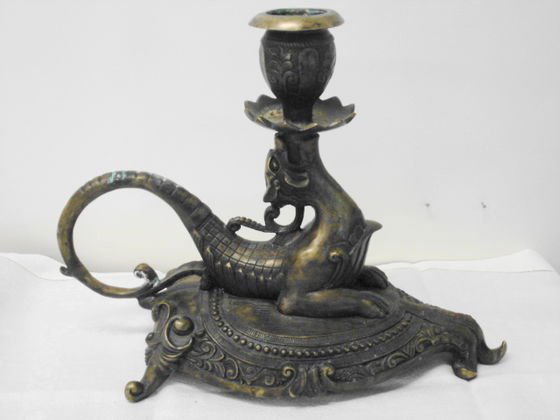 Mythical Sphinx Candlestick, Cast Patinated Bras