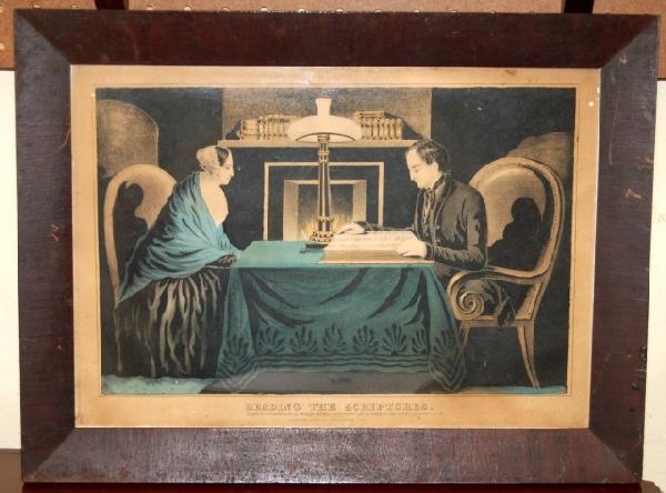 N. Currier Lithograph - "Reading The Scriptures" -