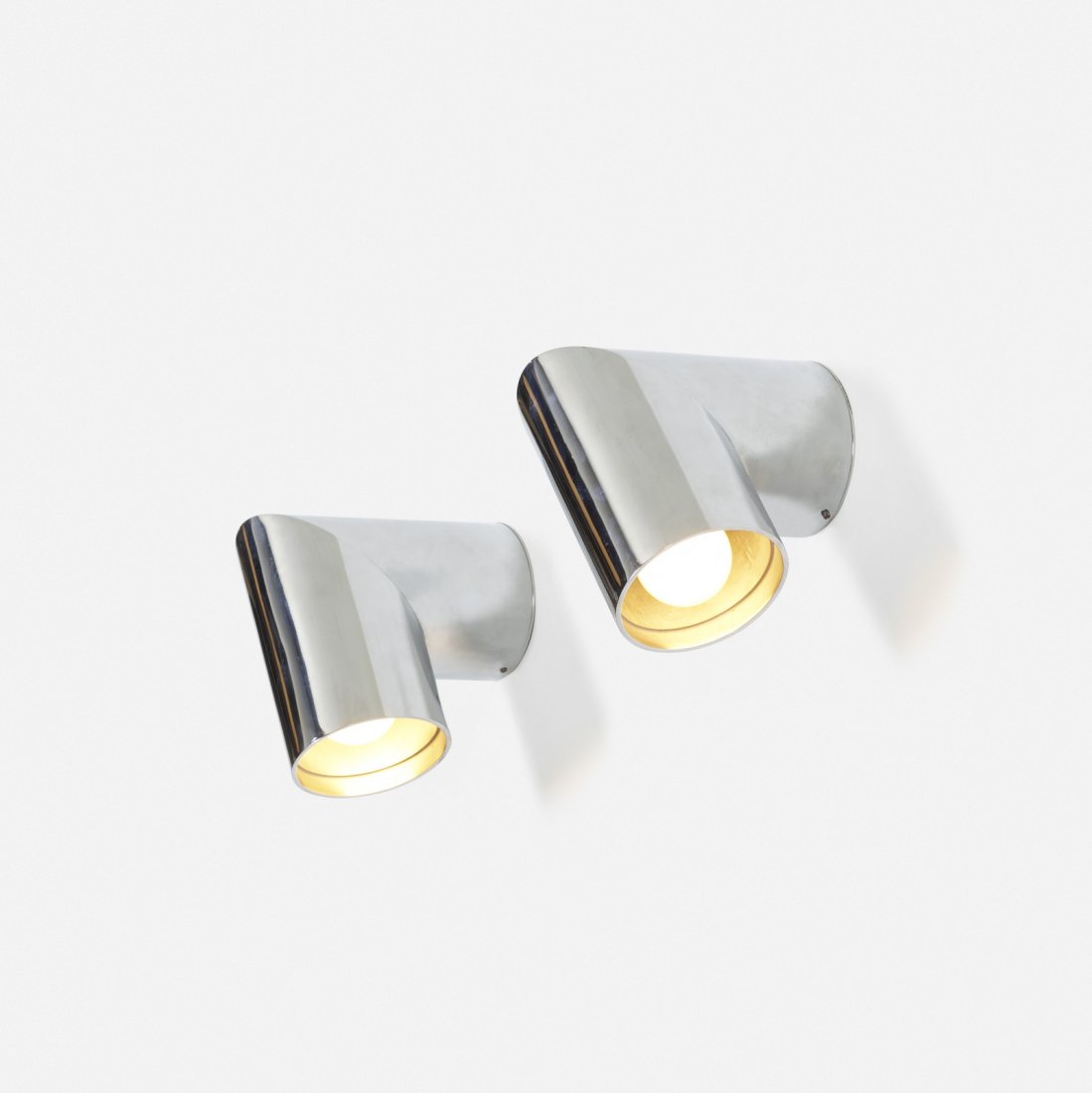 SoldMachine Age, Wall sconces, pairMachine Age Wall sconces, pair USA, c. 1935aluminum, lacquered aluminum, plastic 7 h x 6 w x 6.75 d in (18 x 15 x 17 cm) Provenance: Private Collection ThiSee Sold Price