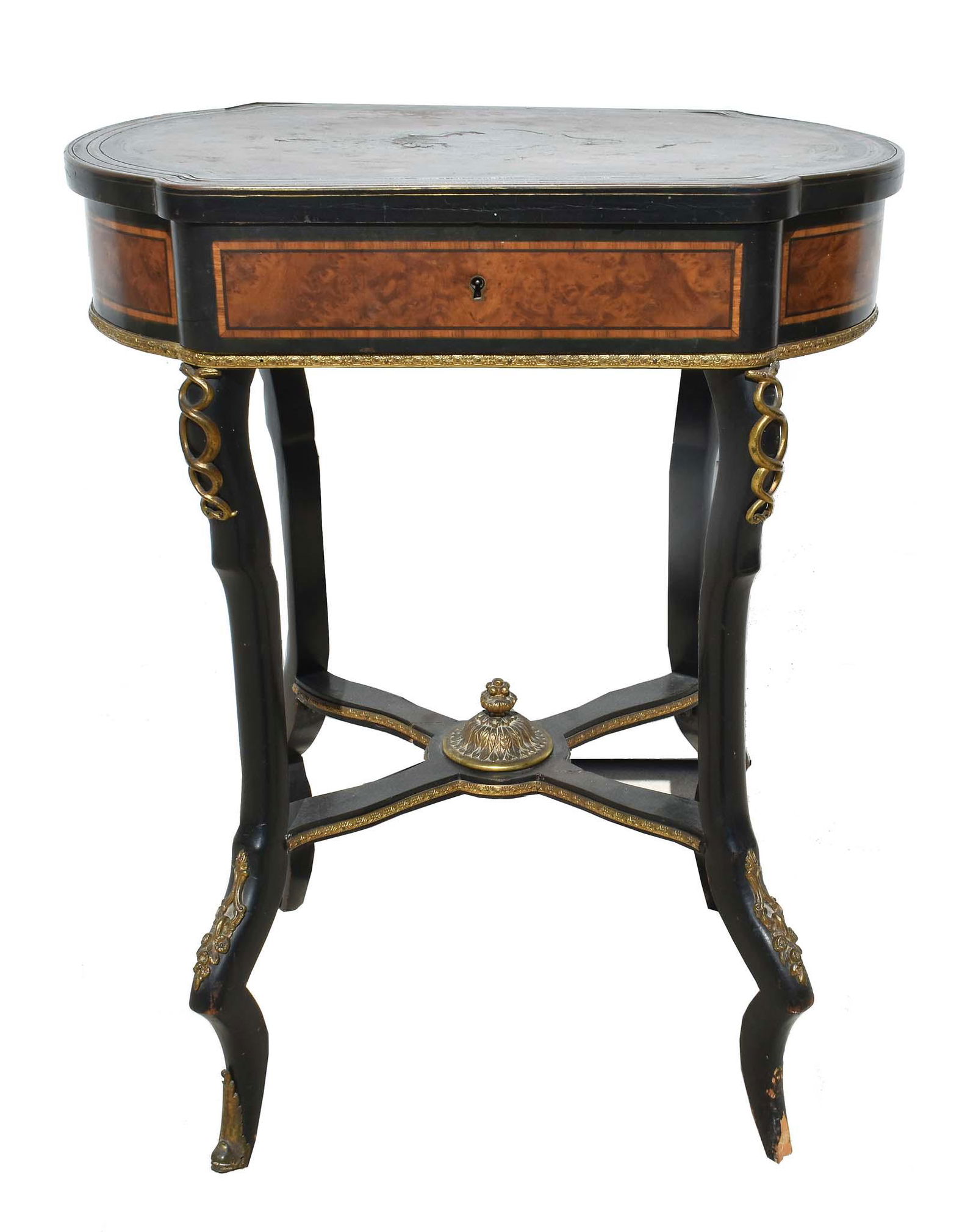 NAPOLEAN III EBONIZED AND VARIED WOOD WORK TABLE