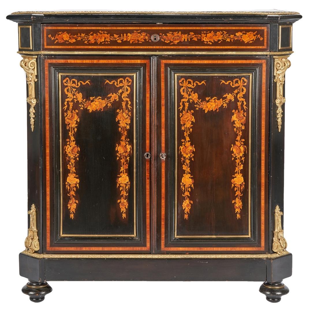 Impressive Boulle Style Glazed Display Cabinet VitrineLouis XV/XVI Transitional-Style Marquetry Inlaid Demilune Cabinet1 day LeftNapoleon III Style Cabinet1 day LeftFrench Brass Inlaid Ebonized Bookcase with Sevres Plaques c.1820Napoleon III Ebonized Meuble d'Appui CabinetMar 19, 2026Charles Guillaume Diehl Bronze Ebonised Inlaid Cabinet3 days LeftFrench Napoleon III Style Ormolu Mounted Parquetry Parlor Cabinet, 20th c., H.- 42 1/2 in., W.- 432 days LeftLouis XV Style Ormolu & Kingwood Bookcase, 19th C.Apr 07, 2026A Napoleon III-style parcel-gilt ebonised vitrine, 20th century,Mar 17, 2026Theodore Alexander 1 Door Cabinet with Bronze Finish and Mahogany Case2 days LeftNorth Italian Gilt-Metal-Mounted Scagliola and Ebonized Table Cabinet, Florence1 day LeftAmerican Renaissance Revival Inlaid Ebony CabinetMar 08, 2026Italian Napoleon III Style Marquetry SemainierMar 14, 2026Louis XV Style Marble Top Gilt Bronze Tulipwood CommodeMar 12, 2026FRANCOISE LINKE, (1855–1946), Fine Louis XV Style Side CabinetMar 12, 2026Ormolu Mahogany & Marquetry Commode After Martin Carlin3 days Left