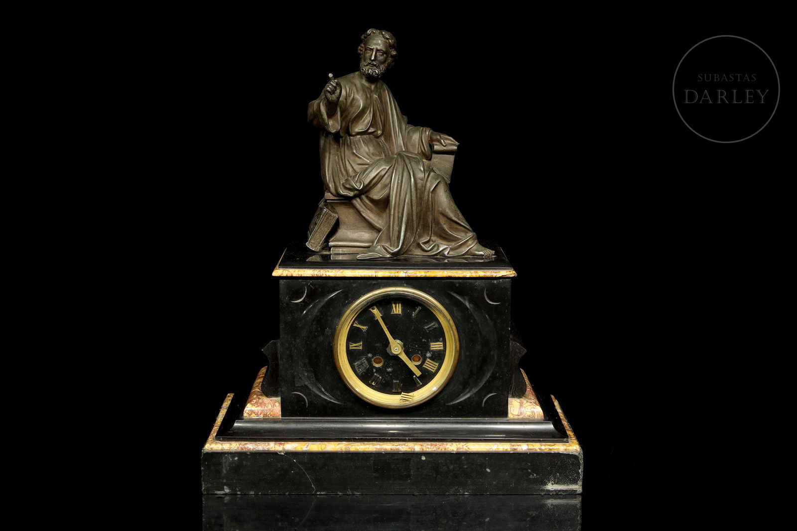 (3) LARGE FRENCH NAPOLEON III SLATE MANTEL CLOCK & TAZZA GARNITURE SETMar 28, 2026FRENCH NEOCLASSICAL STYLE PATINATED BRONZE & SLATE FIGURAL MANTEL CLOCKMar 29, 2026LARGE FIGURAL MANTLE CLOCKMar 28, 2026A ELEGANT 19TH-CENTURY BARBEDIENNE MANTEL CLOCK WITH TIFFANY & CO. MOVEMENTApr 12, 2026After Mathurin Moreau (1822-1912), A Mantel Clock 'Girl with a Water Jug', patinated spelter andApr 01, 2026Napoleon III Style Mantel Clock6 days LeftTable clock with a female figure reading, French neoclassical style, 20th century5 days LeftA Mantel clock, Aristotle, patinated bronze and brass, Empire style, 19th C.Apr 01, 2026French Empire Style Gilt Spelter and Black Marble Mantel ClockMar 31, 2026A small French marble and slate cased mantel clock, circa 1890,