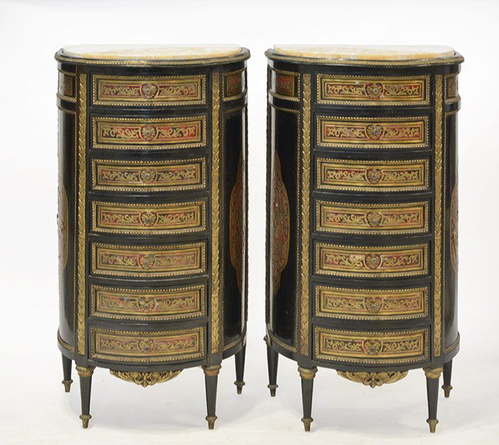 Louis XV/XVI Transitional-Style Marquetry Inlaid Demilune CabinetFeb 26, 2026Pair of Louis XV Style Marble-Top Bedside CabinetsFeb 26, 2026Pair Louis XV Style Japanned Corner Cabinets / Encoignures, Christies ProvenancePAIR FRENCH ORMOLU MOUNTED EBONIZED INLAID MUSIC CHESTS (19TH CENTURY), MYRTLE SCHAAFFeb 22, 2026(2) NAPOLEON III PERIOD MARBLE-TOP & BRASS-INLAID EBONIZED CABINETSFeb 22, 2026A pair of early Victorian ormolu mounted tortoiseshell and brass 'Boulle' marquetry ebonised pie...Pair Louis XV style marble top parquetry commodes7 days LeftLouis XV Style, Tulipwood, Marquetry, Marble, Lingerie Chests, France, 1910sTALL LOUIS XV STYLE MARQUETRY 7-DRAWER SEMAINIER CHESTFeb 21, 2026Pair of Louis XV Style Gilt Bronze Mounted Kingwood and Rosewood Marble-Top Vitrine Cabinets2 days Left(2) FRENCH LOUIS XV STYLE MARQUETRY PETITE NIGHTSTANDSFeb 20, 2026(2) NAPOLEON III STYLE ORMOLU-MOUNTED & MALACHITE-VENEERED CABINETSFeb 22, 2026Set of 2 Mahogany Althorp Nightstands Model AL60057 with Brass AccentsMar 01, 2026Napoleon III Ebonized Meuble d'Appui CabinetMar 19, 2026NAPOLEON III STYLE MARQUETRY INLAY MARBLE TOP CABINET WITH IMPRESSIVE BRONZE MOUNTS MEUBLES D'APPUIFeb 21, 2026Pair Louis XV style marble top commodes7 days Left