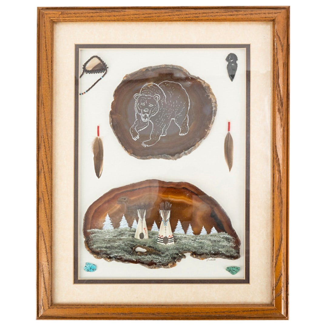 Native American Agate Slice Paintings On Display Frame