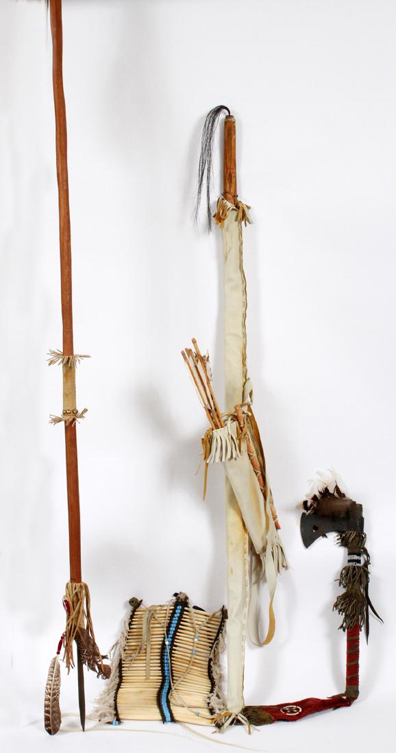 NATIVE AMERICAN CEREMONIAL ARTICLES, LOT OF THREE5 days LeftNATIVE AMERICAN MINIATURE TOTEM POLES, LOT OF SEVEN5 days LeftASSORTED NATIVE AMERICAN AND OTHER ARTICLES, LOT OF THREE5 days LeftASSORTED HAND FORGED LONG HANDLED PROSPECTOR TOOLS / AXES, LOT OF THREE5 days LeftASSORTED FOLK ART CARVED / NATURALISTIC CANES / WALKING STICKS, LOT OF THREEMar 06, 2026NATIVE AMERICAN STONE, BONE, AND WOOD TOOLS AND OTHER, LOT OF 405 days LeftA LOT OF TWO WALKING CANES, ONE CARVED, ONE BEADEDMar 22, 2026LARGE LOT OF NATIVE AMERICAN BEADWORK AND ARTIFACTSMar 18, 2026Collection Antique South American Primitive Native Weapons1 day LeftNative American Trade Peace Pipe Tomahawk with Gun Barrel Bowl and Beaded Fringe1 day LeftNative American Bow and Arrows with Leather QuiverApr 14, 2026Zuni Shaman Antler Club1 day LeftLarge Native American Trade Tomahawk w/ Beaded and Leather Fringe Drop Indian War Period c.1880-19051 day LeftNative American Bow with Seven ArrowsMar 12, 2026Indigenous Medicine Bag, Arrowheads, & Woven Bowls4 days LeftFive Native American Beaded Knife Sheaths4 hrs Left