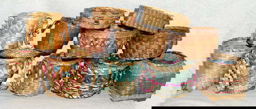 Collector's Lot of 5 Baskets, Chinese And IndonesianApr 14, 2026UNIDENTIFIED INTERIOR SALISH OR TŜILHQOT (CHILCOTIN) ARTIST, Hinged Lidded Basket with Geese or6 days LeftThree Northwest Coast imbricated basketsApr 02, 2026LOT OF (2) PAINTED COUNTRY BASKETSApr 17, 2026Lot of 2 antique miniature fixed handled baskets - 2 3/4" tall x 3 1/2"x2 3/4" & 2" tall x 2 1/2" x11 day LeftThree Southwest basketsApr 02, 2026A Northwest Coast Cedar Bark BasketMar 29, 2026Four Fine Tennessee Splint Oak Baskets, attributed to Mildred Youngblood5 days LeftThree large country woven baskets including: Covered woven splint basket with carved wooden overheadMar 29, 2026Vintage Lot of 9 Peterboro/Longaberger Handwoven BasketsLot of 2 antique baskets incl 1 potato stamp - probably both Native American - 5 1/2" tall x 124 days LeftNative American Basket - Northern California Hupa/Yurok/Karuk c1900s2 days LeftNative American Woven Baskets, 2May 21, 2026(3) ANTIQUE GATHERING BASKETS, UNUSUAL FORMSApr 17, 2026BURT FRIEDUS PAINTED BASKET HANDBAG GROUPING4 days Left(3) 19TH C. PA RYE STRAW BASKETSApr 17, 2026