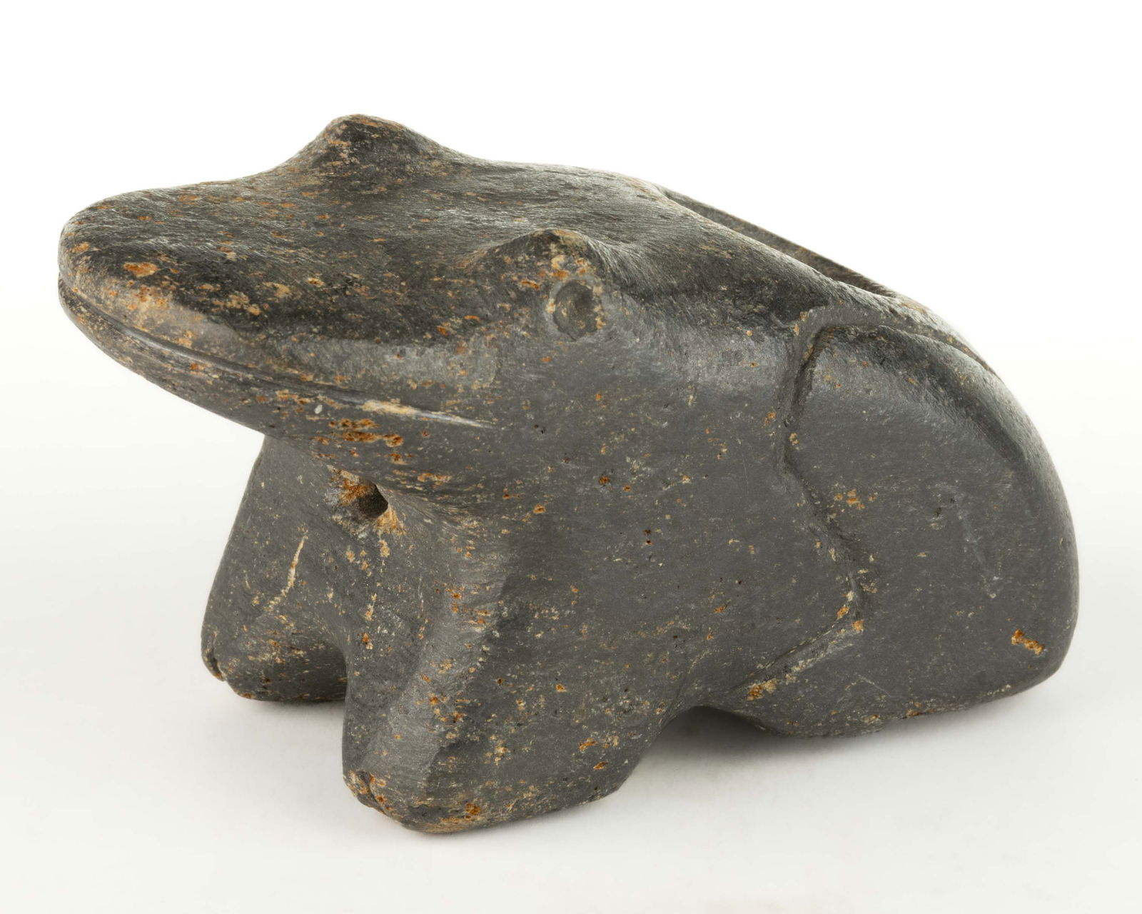 NATIVE AMERICAN CARVED-STONE FROG EFFIGY PIPE