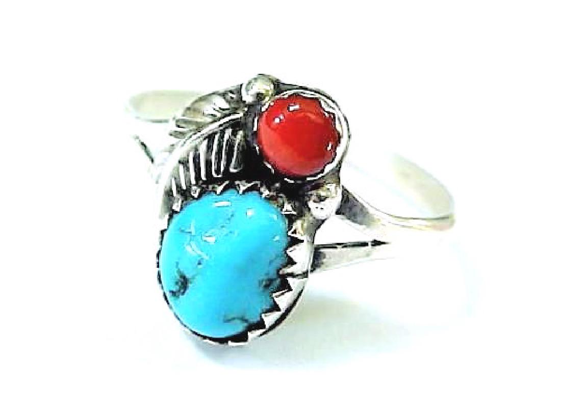 Native American Coral and Turquoise Ring