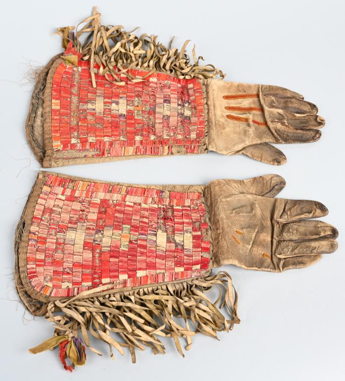 NATIVE AMERICAN DECORATED LEATHER GAUNLETS