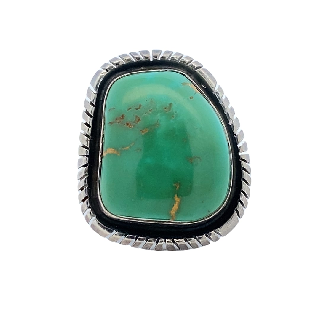 SoldSilver Ray Royston Turquoise Freeform RingSterling Silver | Genuine Royston Turquoise | Silver Ray Royston Turquoise Freeform Ring | Navajo Native American Southwest Indian Jewelry | Approximate Weight: 24 Grams, | Approximate Dimensions: RinSee Sold Price