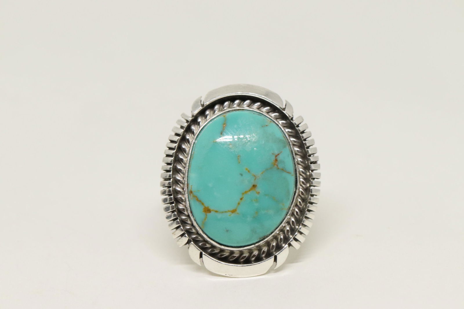 SoldGIANT Navajo Betta Lee Sterling Turquoise Ring 10A Giant Navajo Handmade Betta Lee Solid Sterling Silver Giant Kingman Turquoise Ring size 10 with box in brand new never worn condition. This massive ring is extremely large, covers a large portion ofSee Sold Price