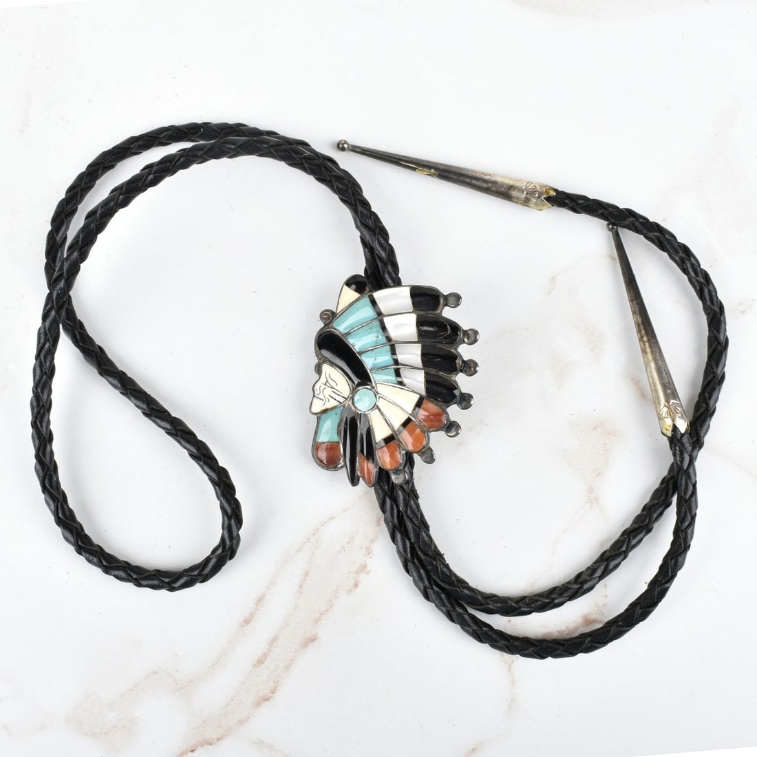 Vintage Zuni Turquoise Coral Acoma Jet & Mother of Pearl Inlay Bolo TieBilly The Kid Auction House4.8(865)$25(1 bid)Mar 08, 2026