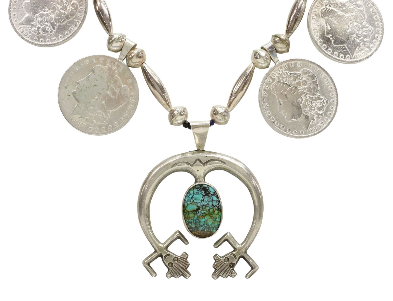 Attributed Diné (Navajo), Squash Blossom Coin Necklace with Turquoise Cabochon, ca. 19501 day LeftFrank Guerro Signed Native American Bear Claw Necklace W/ Morgan Dollars & Turqoise3 days LeftNative America Navajo Sterling Silver Turquoise Naja Pendant By Samuel Yellowhair. With Machine Made3 days LeftFrank Guerro Signed Native American Bear Claw Necklace W/ Morgan Dollars & Turqoise Coral3 days LeftVintage Navajo Sterling Silver Turquoise Squash Blossom Necklace 219gFeb 20, 2026Harry Morgan, Silver Box Bow Squash Blossom Necklace with Turquoise Cabochons1 day LeftA Charlie Singer Navajo silver 'Peyote Bird' squash blossom necklace Charlie Singer (1931-2018,Feb 24, 2026VINTAGE EARLY NAVAJO STERLING SILVER LARGE CARICO LAKE TURQUOISE NECKLACEFeb 12, 2026Turquoise And Sterling Silver Squash Blossom NecklaceFeb 11, 2026VINTAGE EARLY NAVAJO STERLING SILVER LARGE CARICO LAKE TURQUOISE NECKLACEMar 19, 2026Boyd J. Ashley Navajo Sterling Golden Hills Turquoise Walking Liberty Half Dollar PendantFeb 14, 2026Native America Navajo Sterling Silver Sonora Gold Turquoise Naja Necklace By Samuel Yellowhair.5 days LeftVintage Turquoise And Sterling Silver Squash Blossom NecklaceFeb 11, 2026Native America Navajo Sterling Silver Golden Hill Turquoise Squash Blossom Necklace & Earring's Set3 days LeftVINTAGE EARLY NAVAJO STERLING SILVER LARGE CARICO LAKE TURQUOISE NECKLACEMar 01, 2026Native America Navajo Sterling Silver Kingman Turquoise Necklace By Geraldine James.3 days Left