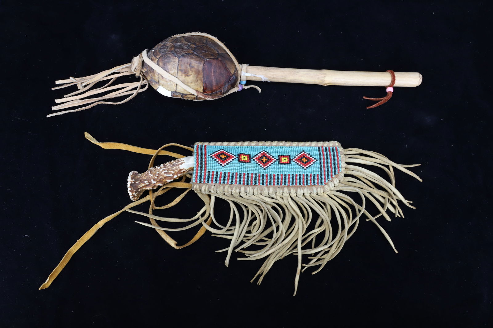 NATIVE AMERICAN RATTLE AND KNIFE/SHEATH