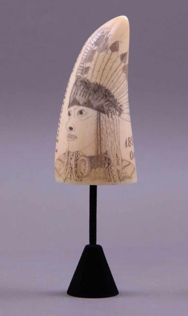 POLYCHROME SCRIMSHAW WHALE'S TOOTH WITH AMERICANA MOTIFS 19th Century Length 5.5".Eldred's4.8(484)$5002 days Left