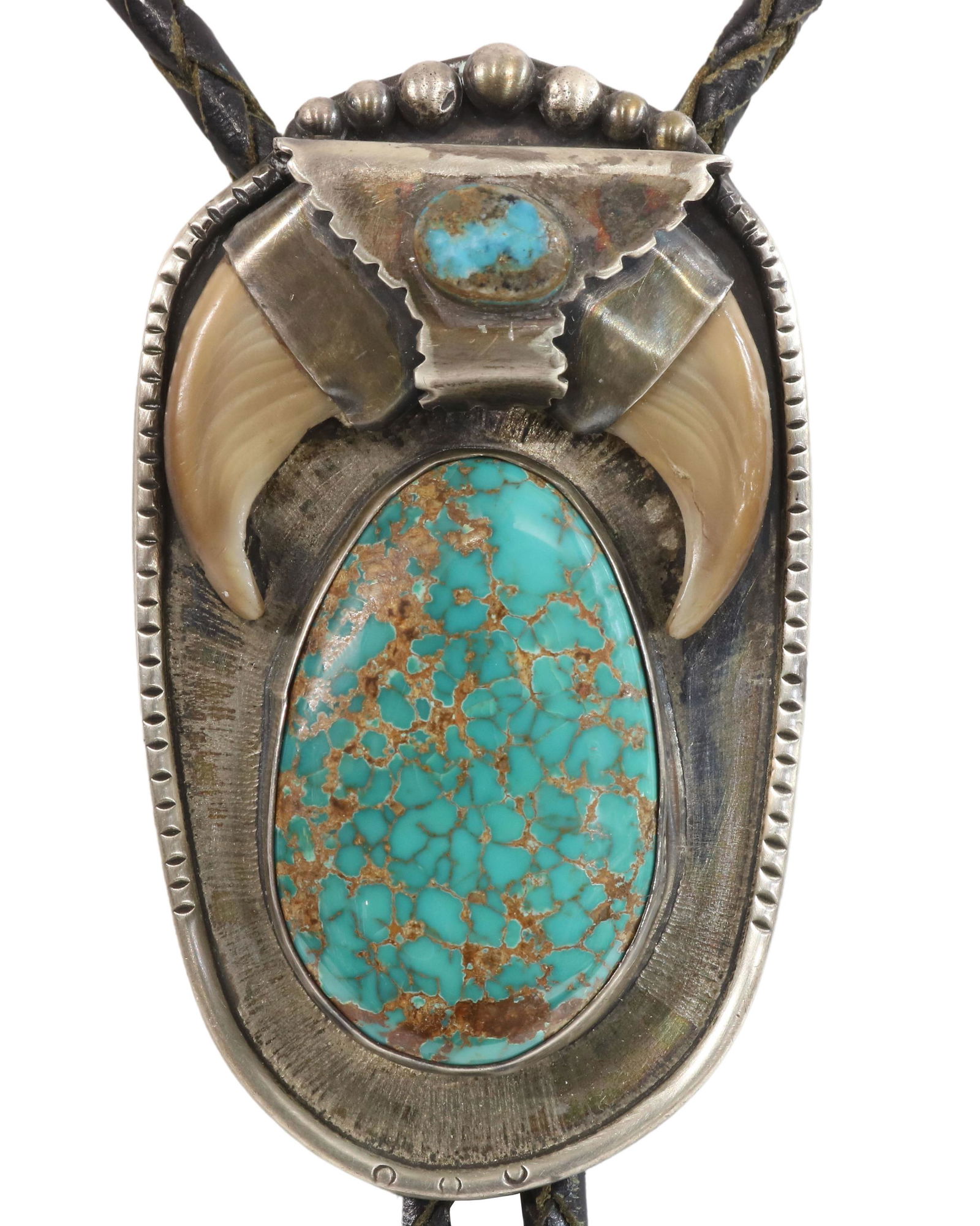 NATIVE AMERICAN SILVER & TURQUOISE BOLO TIE