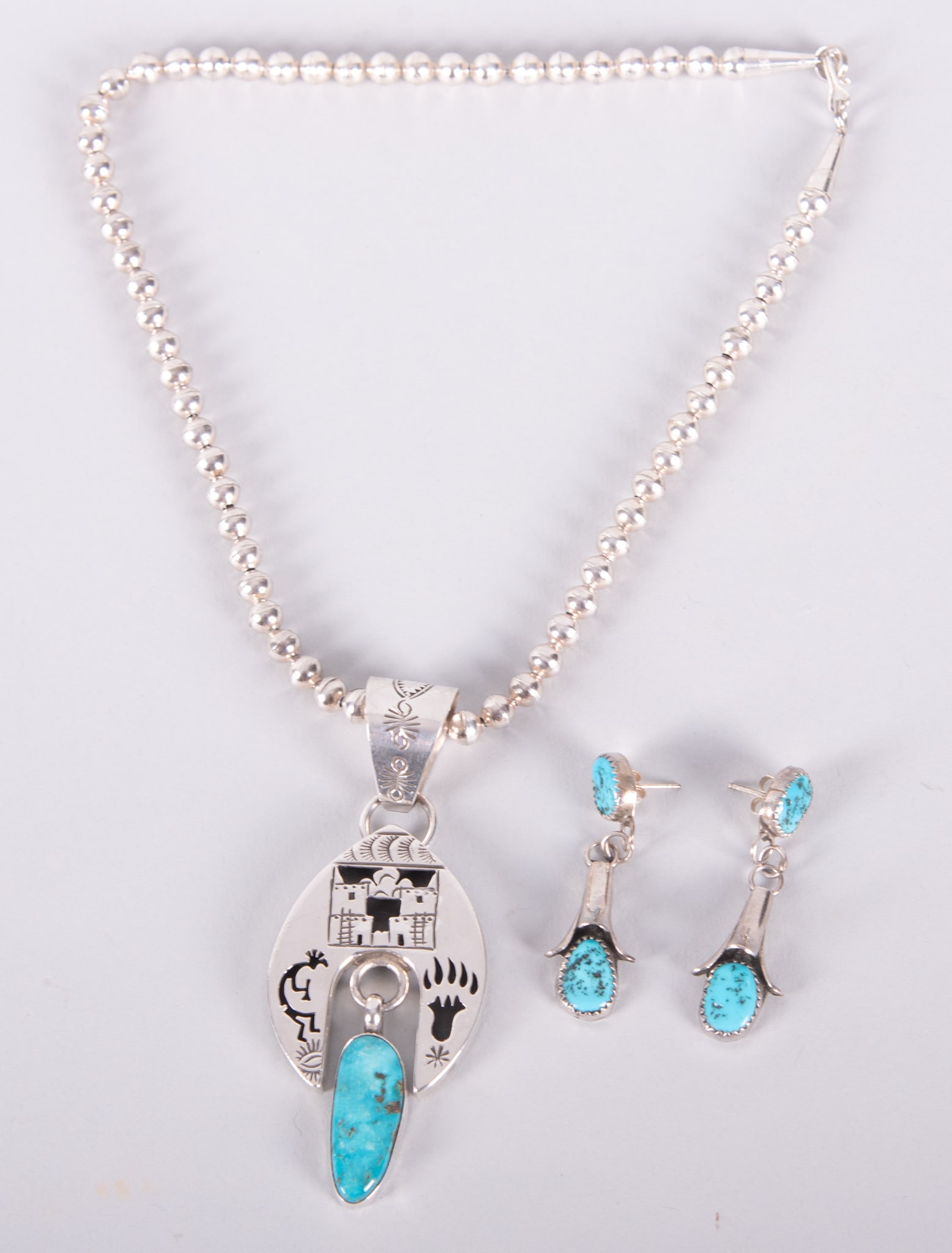 Native American Sterling Openwork Pendant with Earrings