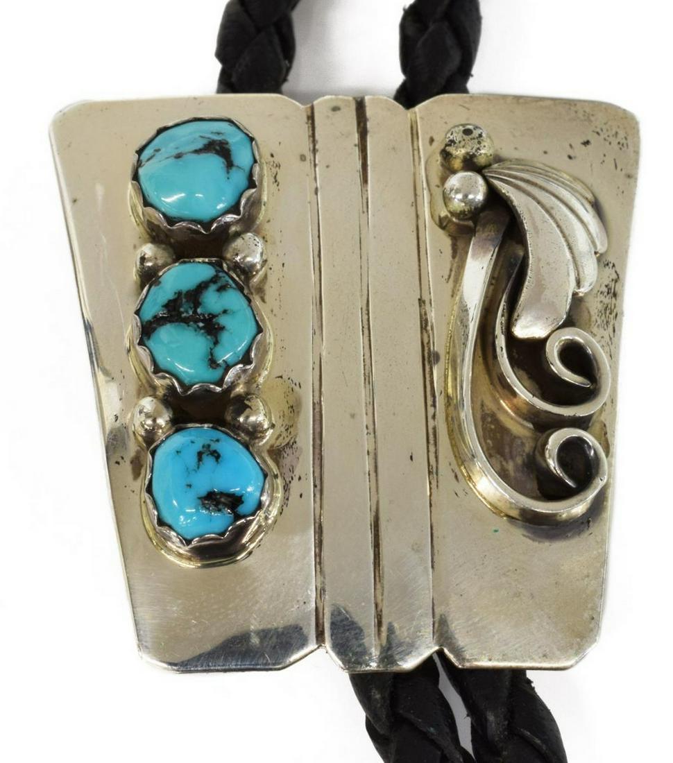 NATIVE AMERICAN STERLING TURQUOISE BOLO TIE