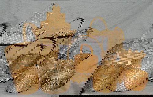 Vintage Lot of 9 Peterboro/Longaberger Handwoven BasketsCollector's Lot of 5 Baskets, Chinese And IndonesianApr 14, 2026Lot of 2 antique baskets incl 1 potato stamp - probably both Native American - 5 1/2" tall x 124 days LeftLot of 2 antique miniature fixed handled baskets - 2 3/4" tall x 3 1/2"x2 3/4" & 2" tall x 2 1/2" x12 days LeftLOT OF (2) PAINTED COUNTRY BASKETSApr 17, 2026Hand Woven Splint Handled Gathering Baskets Lot of 2Mar 30, 2026Traditional Kenyan Hand Woven Basket & Bowl SetApr 09, 20264 Ho-Chunk Splint Woven Black Ash BasketsApr 14, 2026Country BasketsMar 28, 2026(3) ANTIQUE GATHERING BASKETS, UNUSUAL FORMSApr 17, 2026A grouping of 9 mostly Native American baskets including a good primitively decorated white birchMar 29, 2026Three large country woven baskets including: Covered woven splint basket with carved wooden overheadMar 29, 2026Four Good Country BasketsMar 28, 2026(3) 19TH C. PA RYE STRAW BASKETSApr 17, 2026Shaker-style Wood Basket, Rectangular Basket and Gathering BasketMar 30, 2026A group of Northwest Coast basketsApr 07, 2026